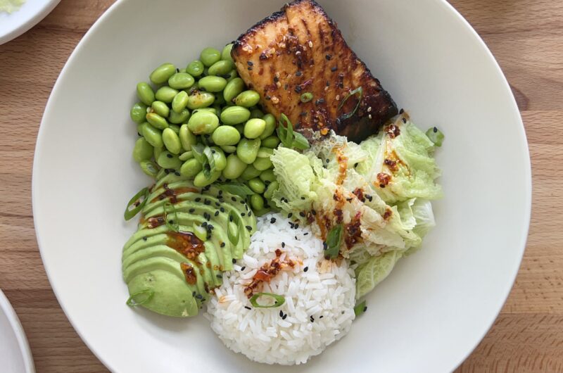 - Combine the remaining 1 tbsp toasted sesame oil with 1 tbsp chili crisp, and brush over the cooked salmon. Garnish with the sliced scallions and sesame seeds. Drizzle remaining sesame oil/chili crisp over rice, if desired.