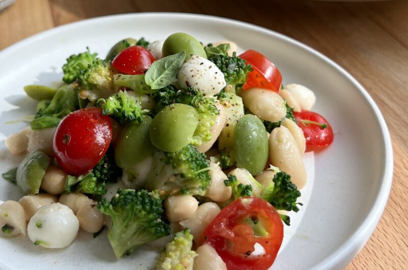 Caprese Inspired Broccoli and White Bean Salad with Castelvetrano Olives and Balsamic Vinaigrette