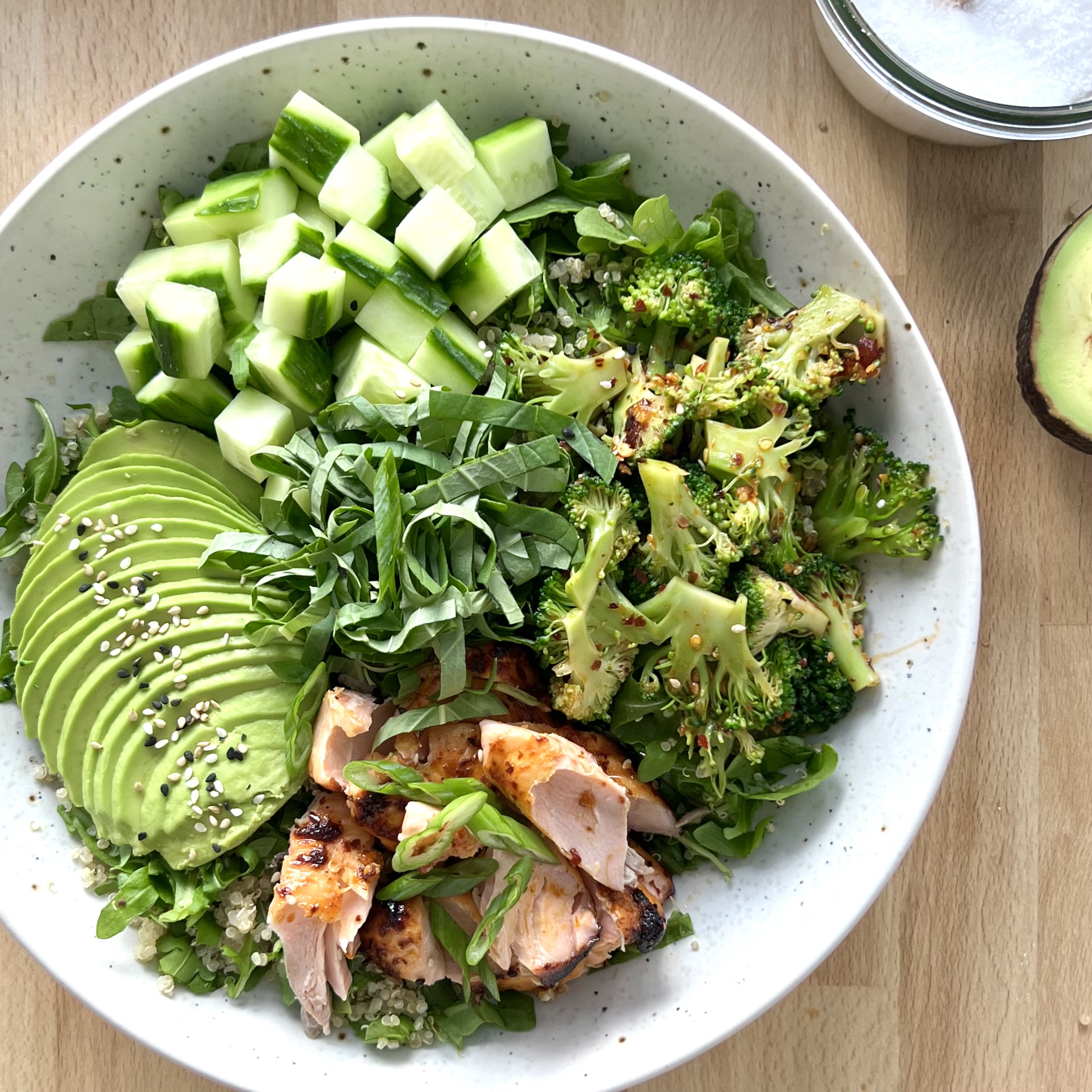 My Go-To Sweetgreen Order: Miso Salmon Quinoa Bowl with Sweetgreen Copycat Spicy Broccoli & Green Goddess Ranch Dressing