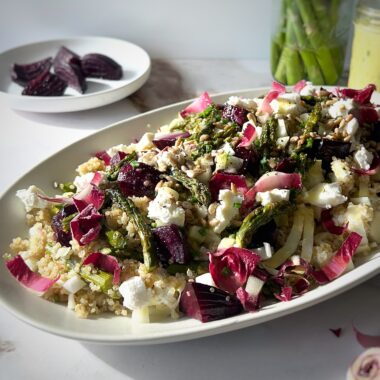 SALADS March 18, 2025 Recipe Roundup: My Favorite ASPARAGUS SALADS! Click on the PHOTOS below for recipes: ROASTED ASPARAGUS, BEET & QUINOA SALAD ASPARAGUS, BUTTERNUT SQUASH & QUINOA SALAD JARS ASPARAGUS, POTATO & SNAP PEA SALAD ASPARAGUS, SNAP PEA & LENTIL SALAD MISO TAHINI ASPARAGUS & CHICKEN SALAD GRILLED PESTO POTATO & ASPARAGUS SALAD ASPARAGUS, WHITE BEAN & ARTICHOKE SALAD SNAP PEA, CORN & ASPARAGUS QUINOA SALAD ASPARAGUS, ENDIVE & SNAP PEA QUINOA SALAD ASPARAGUS & SNAP PEA SALAD with HERBED COTTAGE CHEESE SHAVED CARROT & ASPARAGUS SALAD PLUS MANY MORE IN THE COOKBOOK! Tagsasparagus asparagus salad blanched asparagus grilled asparagus roasted asparagus Twitter Facebook Pinterest Print thesal28_wp ← PreviousRoasted Asparagus Beet and Quinoa Salad with Lemony Chive Dressing Next →Roasted Carrot Miso Hummus