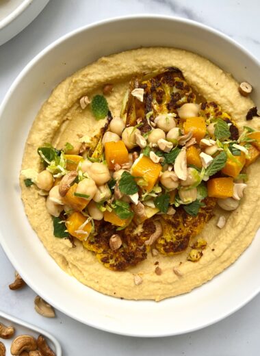 Cauliflower Steak and Butternut Squash Hummus Plate (w/ Brussels, Butternut Squash and Chickpea Salad)