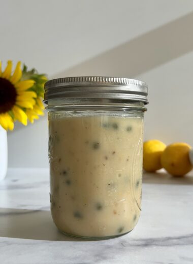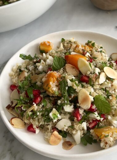 (Serves 4) For Salad: 6 cups romaine lettuce, roughly chopped 6 cups lacinato kale, stems removed, roughly chopped 1 head cauliflower, cut into one inch florets 1/2 cup Parmesan or Pecorino Romano cheese, grated Eggless Caesar Dressing (recipe below) Parmesan Croutons (recipe below) 2-3 tbsp Grapeseed oil Kosher salt Black […]